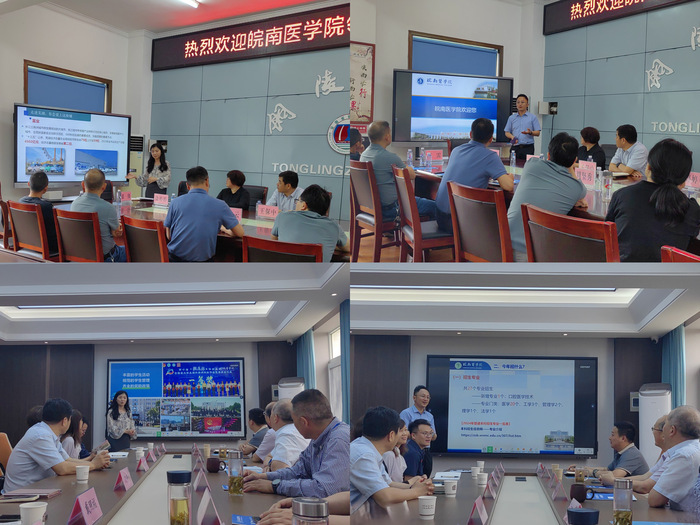 铜陵市卫健委和各家医院分别介绍了铜陵市医疗卫生事业及医院基本情况、医疗队伍建设、临床教学、学科建设、人才需求和招聘现状等。双方还就实习就业一体化、组织专场招聘会、人才培养联动等开展了深入探讨和交流。