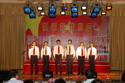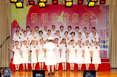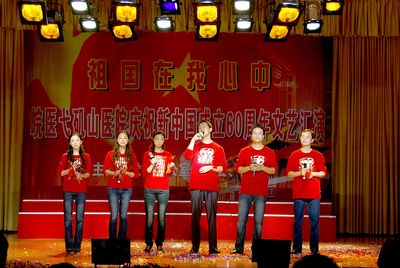 欢歌笑语庆华诞,同舟共济铸辉煌。9月26日晚,随着门诊一支部气势恢宏的大合唱《没有共产党就没有新中国》的激情上演,由附属弋矶山医院党办、工会、团委主办的“祖国在我心中·庆祝中华人民共和国成立六十周年文艺汇演”在儿科五楼大礼堂拉开了帷幕。院党政领导、党支部书记、科主任、护士长、职能科长及医护员工观看了演出。芜湖日报、芜湖广电总台新闻频道等新闻界朋友应邀出席。