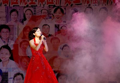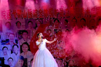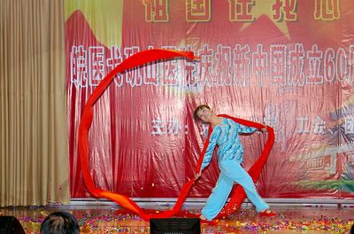 晚会现场,男声独唱高亢嘹亮,女声婉转动听;腰鼓舞活力四射,长绸舞舒展柔美;歌伴舞《五星红旗》、京剧《智斗》等节目都给人留下了美好的回忆,赢得了观众的阵阵掌声。尤其是快板书《国庆快板颂医院》,台词合辙押韵,节奏跳跃欢快,形式新颖,展现了弋矶山人精医尚德、心系患者的高尚情操和锐意进取、无私奉献的思想情怀。