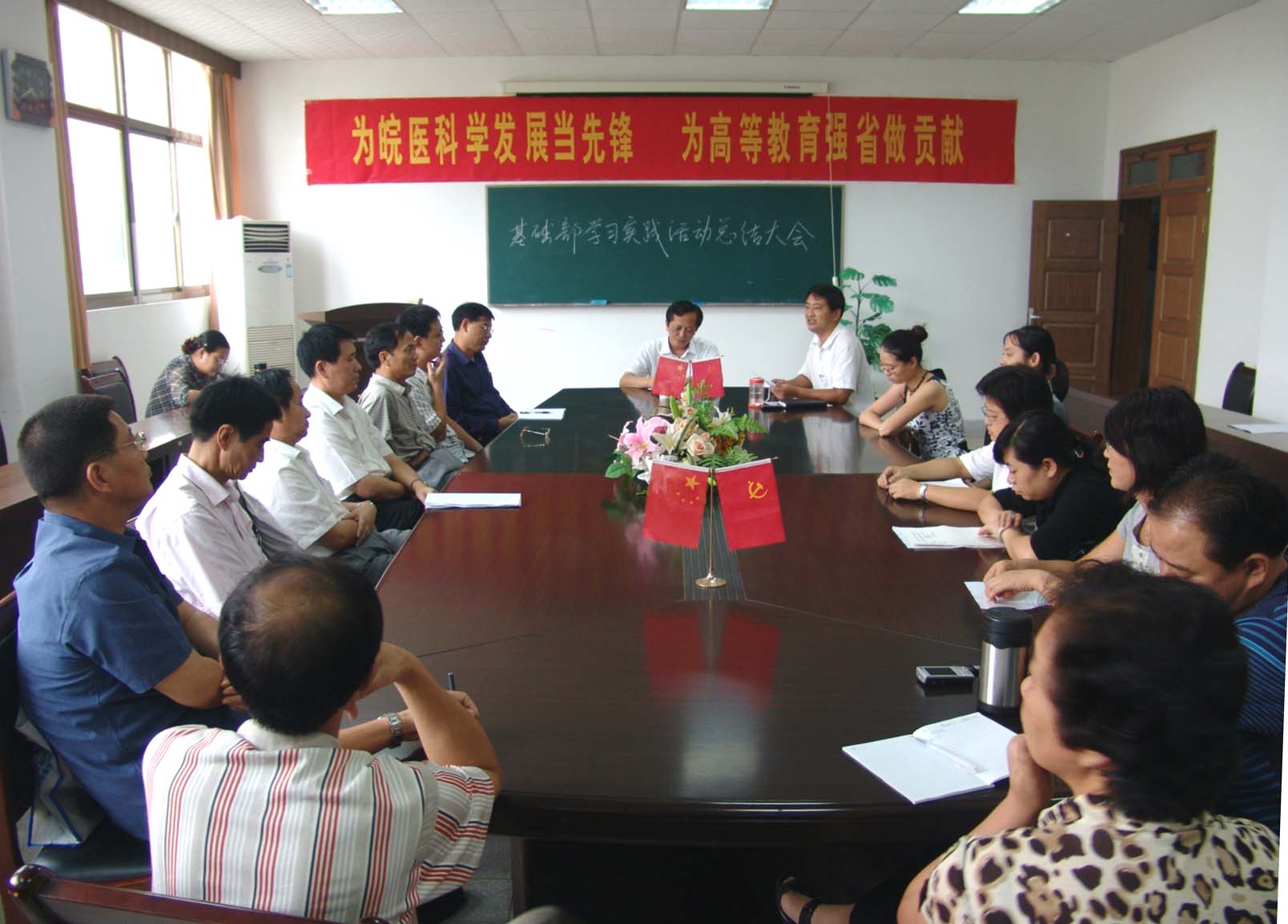 9月17日下午,基础部深入学习实践科学发展观活动总结大会在基础部会议室举行。基础部全体党员参加大会,校党委副书记、院长章尧莅临会议并作重要讲话。会议由基础部总支书记、主任张根葆主持。