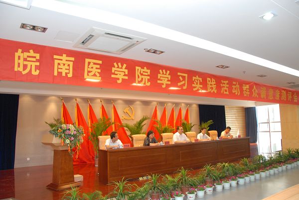 在硕果累累的金秋时节,我校在南校区学术报告厅召开深入学习实践科学发展观活动群众满意度测评会。省属高校学习实践活动第一指导检查组彭玉桦、杨忠祥、齐济友应邀莅临会议指导。校党委书记卞国忠、党委副书记郑勇超出席会议。省、校党代表,省、市人大代表,政协委员;专家代表,基层群众代表以及学生代表计112人参加测评会。会议由党委副书记郑勇超主持。