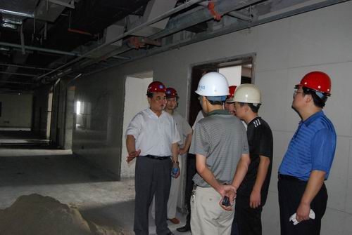卞国忠书记听取了新住院部大楼项目部、大楼办负责人关于工程规划、建设进展情况及建设中遇到的困难问题的汇报。他指出,新住院部大楼建成后,将有力改善医院现有的医疗环境和形象,住院难、加床等一系列问题将有望彻底改观。大楼工程建设前期困难多、工程量大、时间紧迫,希望广大建设者以高昂的工作热情,不畏艰难,锐意进取,确保工程质量。医院后勤部门要认真研究工程规划,密切关注大楼建设的每一个细节,高度重视质量问题,及时将安全隐患消灭在萌芽状态。他要求医院党政领导统一思想,密切配合,通力协作,集中精力加强医院管理,从尽快缓解老百姓“看病难”的高度来认识和对待大楼建设工程。医院党政领导要立足全局,在保证工程质量与安全的前提下,加快工程进度,使这一民心工程早日竣工和投入使用。随后,卞国忠书记深入大楼施工现场,了解大楼6至23层的施工进度并提出要求。