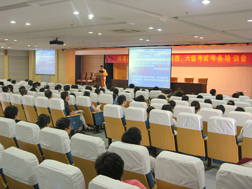 学校高度重视本次考试,考前教务处在图书信息大楼三楼报告厅召开考务工作培训会,会议由教务处处长王丽主持。教务处副处长杨建勤、监考教师和考务人员参加培训会。会上对监考人员进行了认真仔细的培训,进一步规范考务工作,对要特别注意的事项反复强调,确保考试工作的顺利进行。