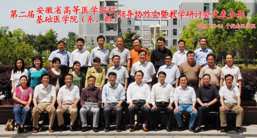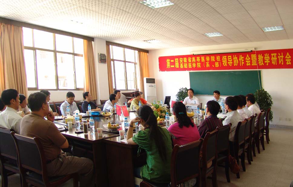 2009年5月8日至5月10日,第二届安徽省高等医学院校基础医学院(系、部)领导协作会暨教学研讨会在我校召开,来自省内各医学相关院校负责基础医学教育的二十多名代表参加了会议。此次会议由我校基础部承办,是在全党上下开展深入学习实践科学发展观的大背景下,我省基础医学教育界践行科学发展观的一项重要活动。