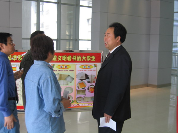 4月15日上午,李朝品副院长在社科部党总支书记、社科部主任王方根、图书馆馆长陈劲和副馆长戴达宁等同志的陪同下来到图书馆大厅,参观破损图书实物展,李朝品副院长对举办书展给予了高度评价。