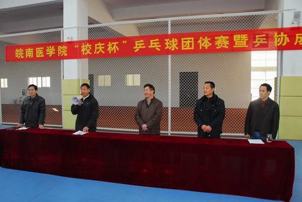 为庆祝建校50周年,丰富教职工的业余生活,增强教职工团结协作精神和凝聚力,经过近20天精心准备,11月28日上午8:30分,“校庆杯”教职工乒乓球团体赛在风雨操场隆重举行。校党委副书记、纪委书记程度、工会主席方华、校体委副主任吴伟勤出席开幕式,开幕式由校组织部长周强主持。