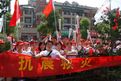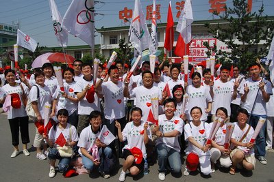 我校同时派出青年医护员工组成方阵,在圣火传递现场为奥运加油!
