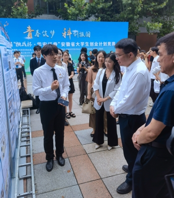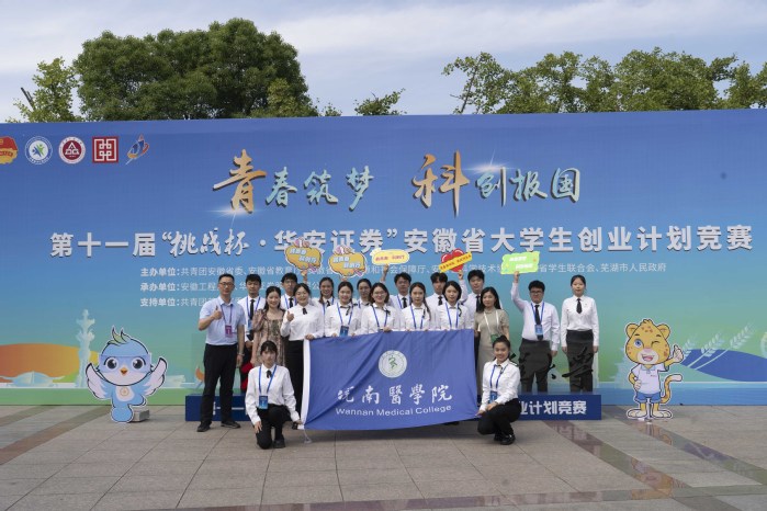 青春筑梦,科创报国。6月18日至20日,由共青团安徽省委员会、安徽省教育厅、安徽省人力资源和社会保障厅、安徽省科学技术协会、安徽省学生联合会、芜湖市人民政府联合举办的第十一届“挑战杯•华安证券”安徽省大学生创业计划竞赛在安徽工程大学圆满落下帷幕。校党委副书记贾贤燕赴比赛现场看望参赛选手,并参加大赛闭幕式。我校报送的作品从全省127所高校的1401件作品中脱颖而出,斩获金奖5项、银奖4项、铜奖8项,获金奖数量在省内医学院校中位居首位,学校首次捧得“优胜杯”,取得历史性突破。