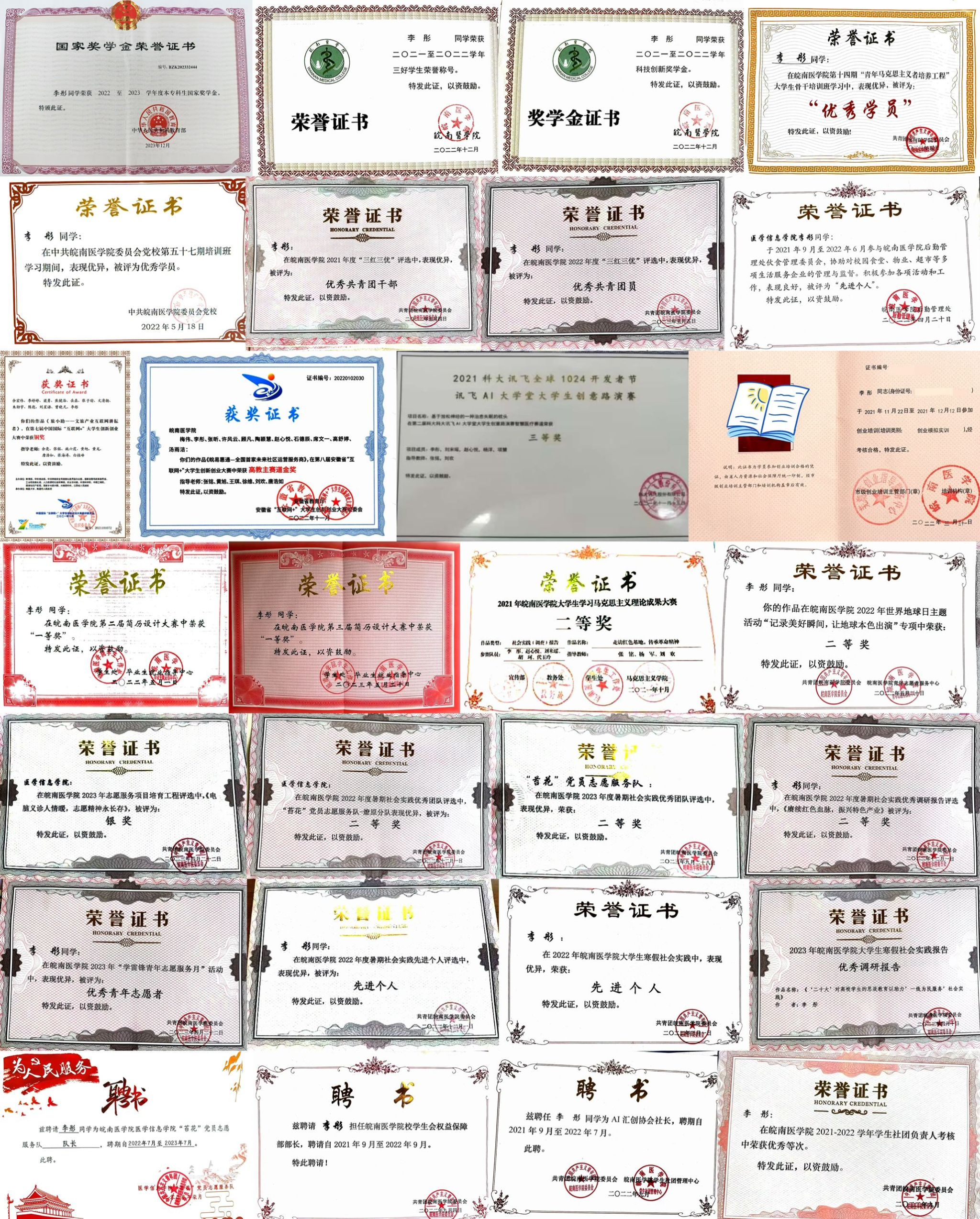 李彤,女,汉族,中共党员,医学信息学院2020级智能医学工程专业本科生,曾获国家奖学金、校三好学生标兵、2024年安徽省普通高等学校优秀毕业生等奖项及荣誉称号,现已考取合肥市基层选调生。