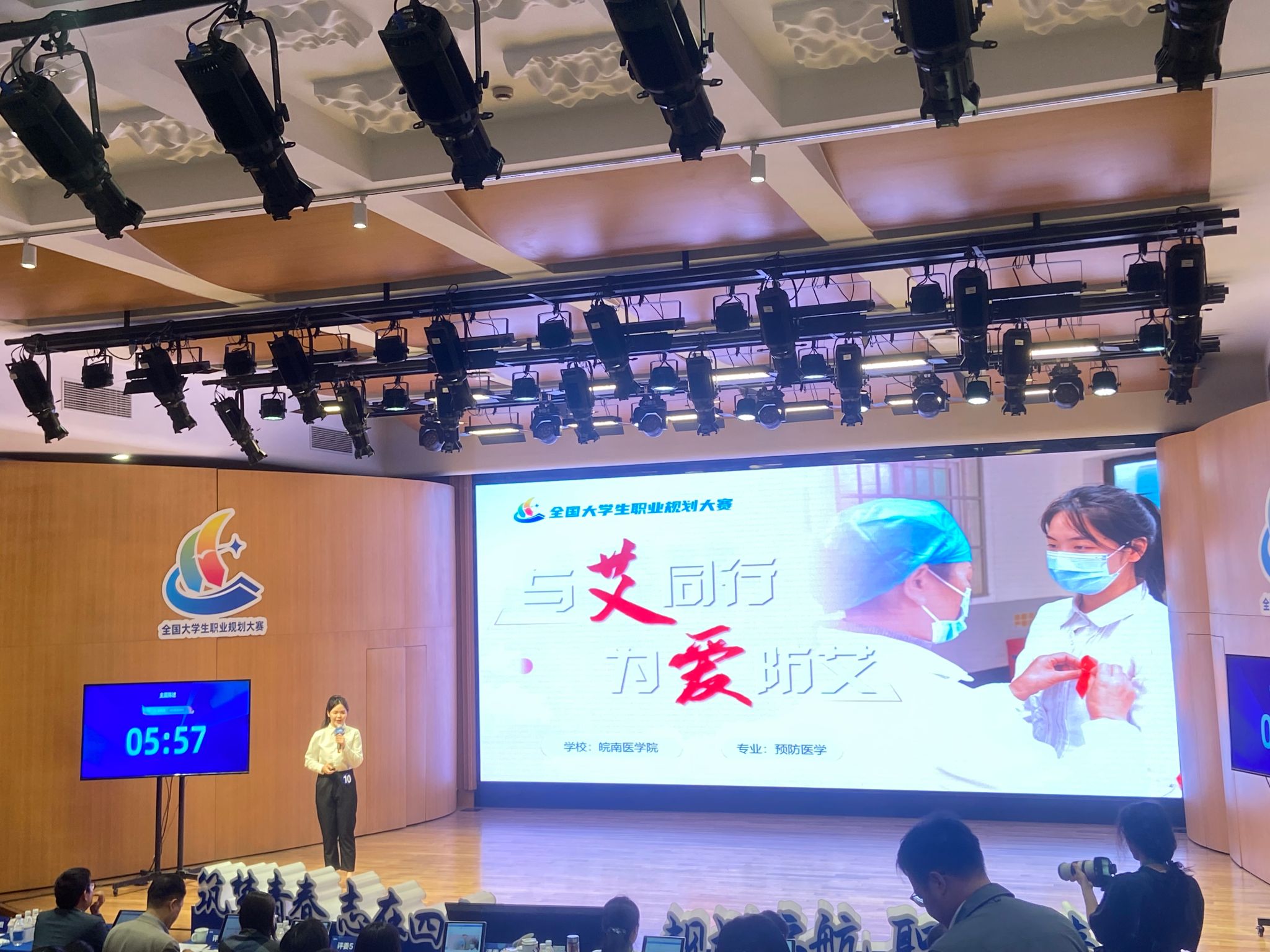 学校高度重视此次大赛,自2023年8月启动以来,分别组织学院初赛、校级半决赛和校级决赛,发动2417名在校生参赛,其中成长赛道1958人、就业赛道459人,为历年人数最高。自省赛名额分配公布以来,学生处制定更加详实的培育方案,组织专家多轮对入围省赛的5项项目从职业目标、行动成果、目标契合度、实习意向、生涯发展报告、生涯发展展示、主题陈述、求职简历、综合面试、评委提问、天降 offer、PPT制作等12个方面进行深度指导、专项打磨,帮助项目完善作品。在上海交通大学决赛现场,我校公共卫生学院学生杨雨荷(指导教师:李力、张建英、张伟)凭借清晰的思路、高度契合的目标、切实可行的方案和稳定的发挥,围绕个人实现职业目标的成长过程,讲述树立正确择业就业观念,通过学习实践持续提升、进步成长,增强自身的综合素质和能力等,得到评委的一致好评,最终获全国总决赛铜奖。