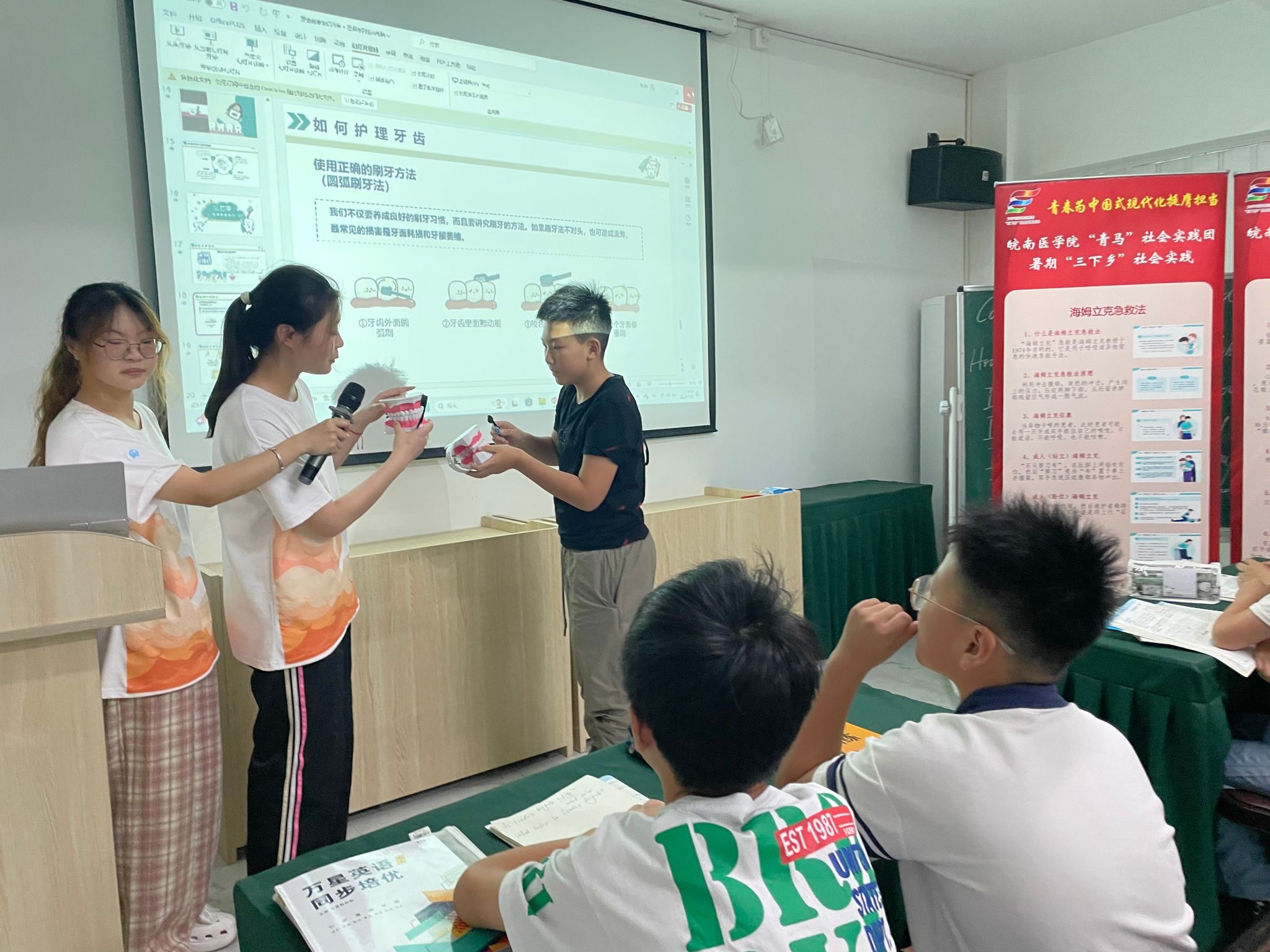 国家级专项研究生学院“医者行”、药学院“仁药”等7支团队和省级专项检验学院“成长对话”志愿团,与护理学院“南丁格尔”、口腔医学院“逢青之旅”等205支校级志愿服务队先后前往池州、黄山、阜阳、六安等市县40余地开展健康义诊活动。来自附院的临床专家和青年师生们将血压、血糖、心电图、B超、耳鼻喉、眼科、老年医学科等健康义诊项目送到群众家门口,以“医”心融“民心”,让基层群众更有“医”靠。国家级专项“七彩假期”、联合省级专项“少先队实践营”面向全校志愿服务队开展“杏林小讲堂”线上集体备课,以医学知识科普、应急救护技能、慢性病防治、传染病预防、用药安全、健康饮食、心理健康等主题为重点,将学校第三届医学人文节医学微课比赛遴选打造的医学科普金课,带进书房、社区、学校与乡村,累计开展宣讲200余场,受惠群众9000余人。皖医青年将专业所学转化为青春实干的具体行动,持续扩大“专家+大学生”“杏林小课堂”品牌效应,奏响健康中国行动“进行曲”。