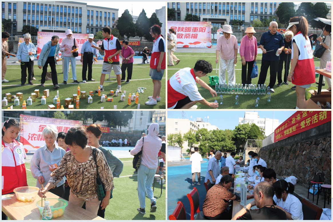 重阳节期间,学校还开展了走访慰问、为80和90周岁老同志们集体祝寿,举办“健康伴您行”趣味运动会暨“关爱老人,情暖重阳”爱牙活动等系列活动。
