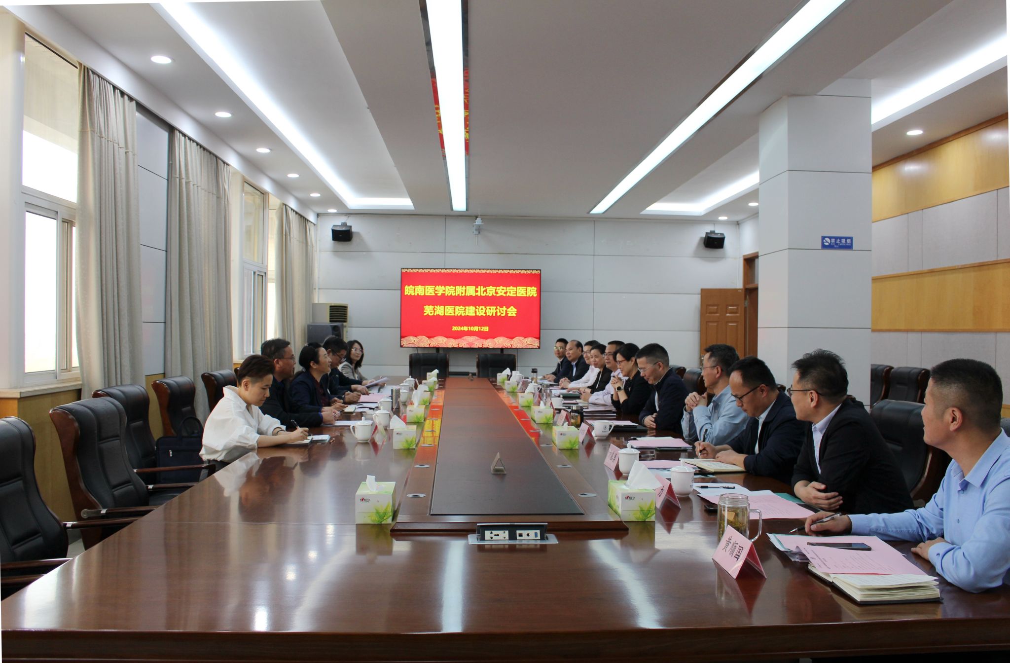 为探索复合型人才培养新模式,培养适应医药卫生事业发展需要的应用型精神医学专业人才,10月12日下午,首都医科大学附属北京安定医院芜湖医院党委书记沈棫华、院长李占江、宋传福等一行来我校召开附属北京安定医院芜湖医院建设研讨会。学校党委书记夏劲松,党委副书记、院长姚应水出席会议,副院长文育锋主持会议。