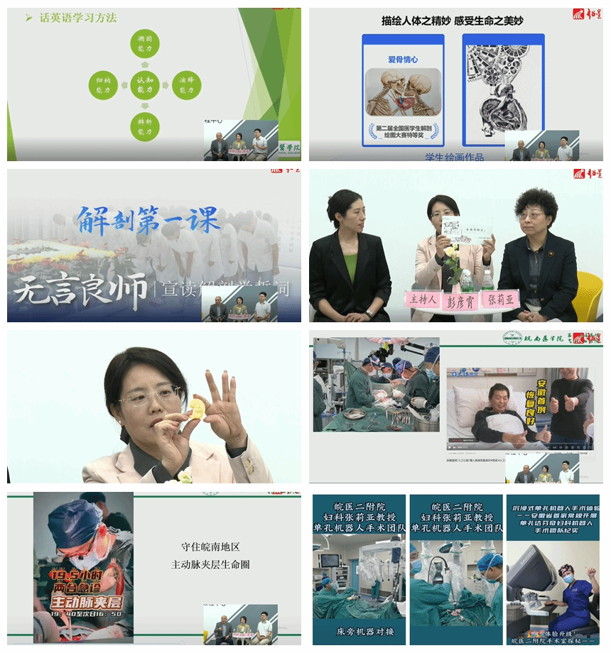 在这场云端盛宴中,来自不同领域的名医名师们纷纷亮相,以自身经历为引,分享了宝贵的学习方法和职业发展规划。省教坛新秀李东老师以其丰富的教学经验和深厚的语言功底,为新生们揭示了通识课程英语学习的奥秘,鼓励新生们通过多听、多说、多读、多写的方式全面提升英语能力,并分享了一系列实用的学习资源和技巧;省金牌职工产翠翠老师、省课程思政教学名师彭彦霄老师分别阐述了基础课程以及学科基础课程在医学知识体系中的核心地位,鼓励新生们要重视这类课程的学习,建立起对人体结构、功能及疾病发生和发展机制的全面认识,为未来的临床实践打下坚实的基础;心脏大血管外科张大发主任、妇产科张莉亚主任各自分享了临床课程及医理医工医文融合新医科新技术在医疗和健康领域的创新应用,并以生动的手术案例展现了新医科理念在医疗领域的巨大潜力,让新生们对医疗领域的未来发展有了更清晰的认识。