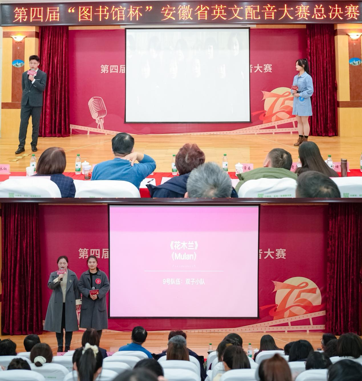 12月22日,由安徽省高等学校情报工作委员会、安徽省高等学校数字图书馆、安徽省图书馆学会主办的2024年第四届“图书馆杯”安徽省英文配音大赛在合肥市图书馆圆满落幕,我校师生作品获特等奖1项、二等奖1项,学校图书馆获“优秀组织单位”。