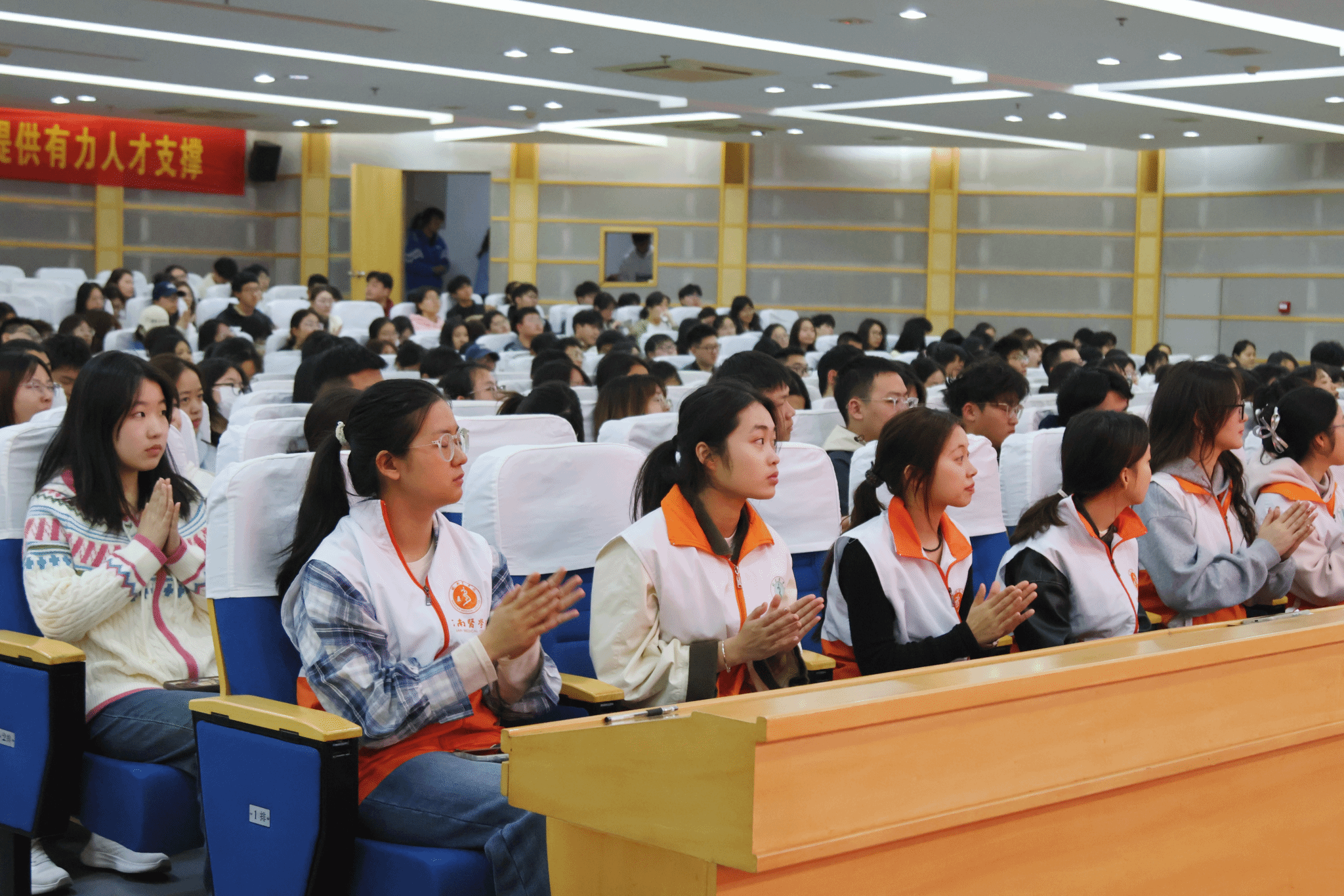 为学习贯彻落实习近平总书记关于深入开展学雷锋活动的重要指示精神,引导广大青年学生以实际行动书写新时代的雷锋故事,在全国第62个“学雷锋纪念日”暨第26个“中国青年志愿者服务日”来临之际,3月2日上午,我校在滨江校区(北区)图书馆三楼报告厅举行优秀志愿服务项目分享会暨2025年“学雷锋”青年志愿服务月启动仪式。校团委书记饶婷婷、副书记黄龙,各二级学院志愿团队负责人,青年志愿者服务中心及公益类学生社团等300余名青年志愿者代表参加活动。