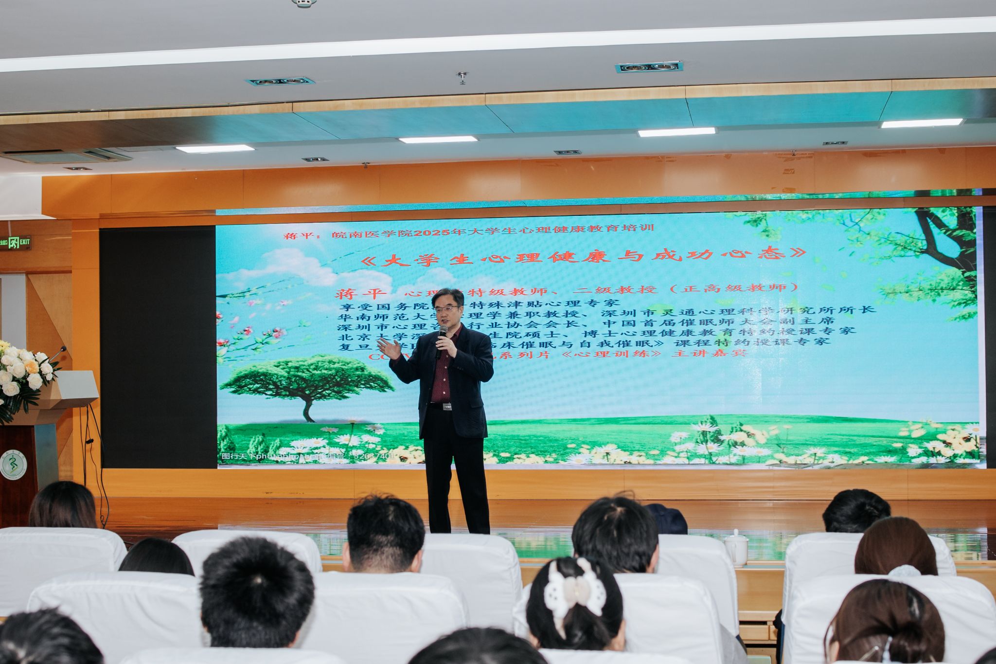 蒋平教授围绕主题展开了深入且精彩的分享。他结合大量实际案例,深入浅出地分析了大学生常见的心理问题及其根源,并详细阐述了如何培养积极健康的心态,以应对学习、生活和未来职业发展中的各种挑战。