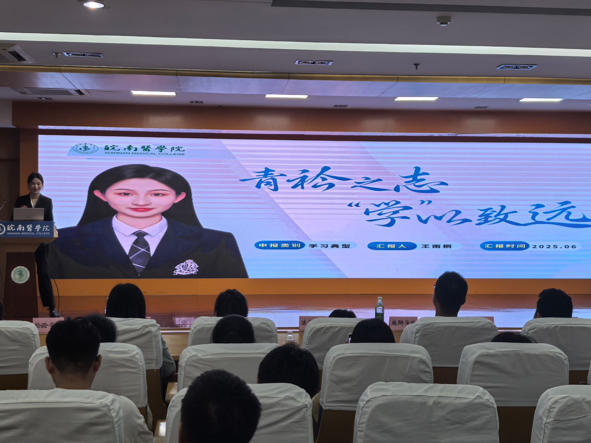 汇报现场,聚光灯下20名选手依次登台,通过PPT展示、主题演讲、舞台表演等多种形式,声情并茂地分享了他们的成长历程、奋斗故事、心路感悟与未来展望,亮点纷呈、催人奋进,展示了勤奋好学、全面发展、实践创新、自立自强、无私奉献的精神面貌。最终,吴蓓(法医学院)、邓奕(药学院)、黄宇(临床医学院)、纪阳斌(麻醉学院)、芮尔安(公共卫生学院)、王雨桐(临床医学院)、章译文(医学影像学院)、周鑫成(麻醉学院)、李苏慧(药学院)、胡静怡(口腔医学院)等10名同学凭借优异表现,拟获2024年度十大“优秀学子”荣誉称号。