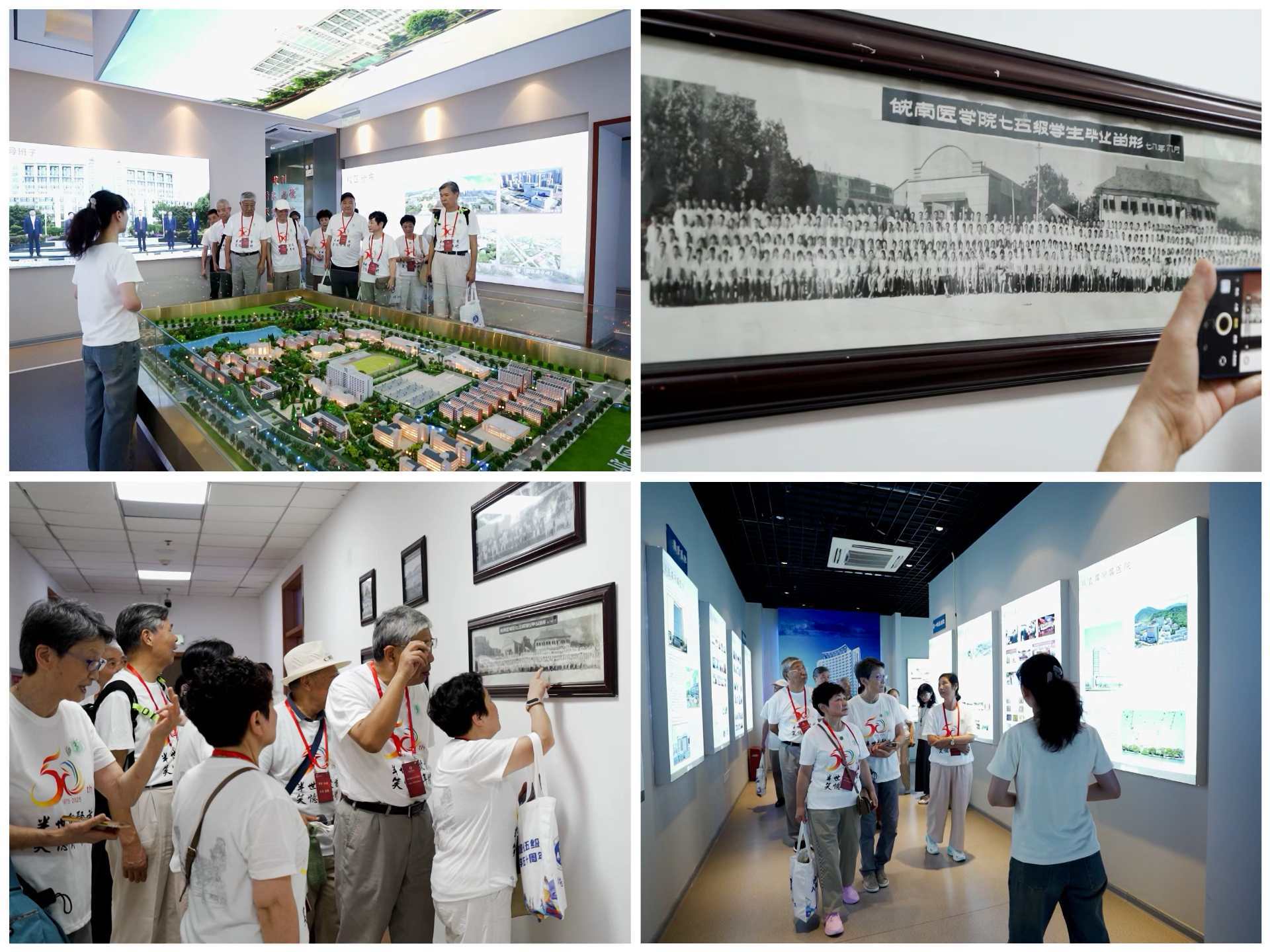 纪念大会结束后,校友们还参观了新校区、校史馆以及第一附属医院江北院区,感受母校的发展历程和巨大变化;在食堂排队用餐,重拾记忆中的味道;重返赭麓校区和“校友之家",重温当年学习场景。