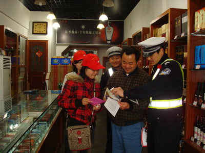 向店主发放交通安全知识宣传单