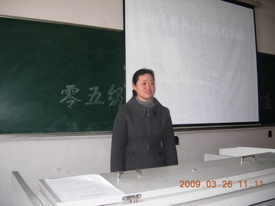 口腔修复教研室张小良主任首先为同学们指导“如何处理好医患关系”。张主任结合自己多年行医的经验,亲切教导同学们如何做好从医学生向临床医生的转变,并就如何处理好医患关系给出了许多具体的意见和建议。
