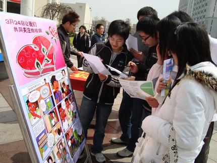 活动中,同学们以“控制结核,人人有责”的主题宣传展板宣传结核病防治知识,并向过往的人群发放了内容包括“什么是结核病”、“怎样发现和治疗结核病”等方面的宣传资料和问卷调查。