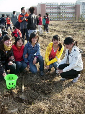 这次活动共植树10棵,种植地点位于校园东北角。活动中大家表现出很高的热情。同学们分工明确,以寝室为单位,在寝室长的带领下,挖坑、种树、浇水、填土,四项程序有条不紊的进行。大家克服了离水源远、工具不够等问题,虽然很累,但是大家的兴奋之情溢于言表,都表示今后会精心照顾这些小树苗,陪伴它们度过大学5年的时光,即使毕业了也会时而经常回来看看。