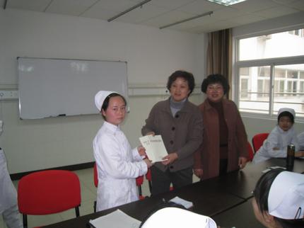 检查组检查了该院护理部的实习计划落实及实习带教情况,当天下午,又召开了实习生座谈会。同学们首先肯定了医院护理部的认真带教及对学生的关爱,并对实习带教提出了一些建议。座谈会上,朱丹同志还传达了学校关于深入开展学习实践科学发展观活动的部署和要求;并把《科学发展观重要论述摘编》、《毛泽东邓小平江泽民论科学发展》两本学习资料发给党员,要求党章学习小组认真组织学习并结合实践开展活动,务求取得实效。