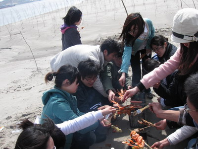 临近中午,同学们一路挥汗“驮”来的锅碗瓢盆及各式烧烤用具派上了用场。大家点燃烤箱,架上带来的各类食品,抹上一层色拉油,再配以各种作料,不一会就香味弥漫。野炊之后,同学们还一起踢起了沙滩足球,旅程结束前同学们自发地对周边的垃圾进行了清理。