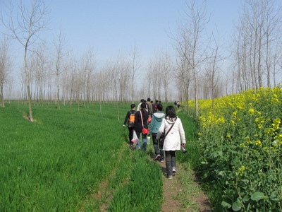 上午八点,同学们怀着兴奋的心情,开始了前往曹姑州的旅程。经过一个多小时的车程到达了长江边,导游早已在江边等候了,随后轮渡把大家带到了目的地。放眼望去,曹姑州早已春色盎然,岛上布满了高低参差的灌木丛、绿油油的草地、小麦和油菜。