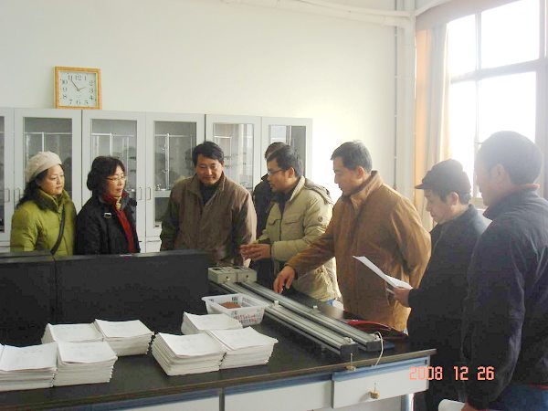 1226下午,基础部会同教务处,对部属各学科的实验室、研究室、教师办公室的安全卫生状况及实验教学工作档案进行了全面检查。从检查情况来看,绝大多数实验教学中心和实验室都能高度重视实验室安全卫生等各项管理工作,实验教学工作档案完整,职责明确,制度完善,仪器设备安放规范整齐,化学危险品安全措施有效。对少数实验室存在的问题,检查组现场指出,并要求及时完善实验教学工作档案,排除安全隐患,保持实验室整洁卫生,以平安、和谐的环境迎接新的一年。