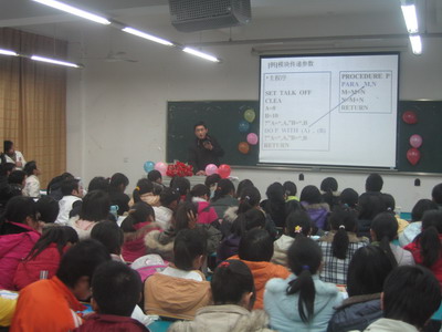为帮助同学们提高计算机VFP应试能力,更好地复习迎考, 12月16日下午,我系2007级特邀校计算机教研室副主任叶明全副教授在西103教室举办了一场VFP考前冲刺讲座。