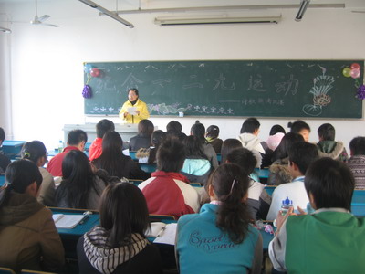 为纪念“一二・九”运动七十三周年,培养我年级学生的爱国热情,11月30日下午,医学一系2007年级团总支举办的纪念“一二・九”运动古诗词朗诵比赛在西103教室隆重上演。 诗歌传达爱国热情,诗歌凝聚学子心声。比赛现场,气氛热烈,高潮不断。选手们以一首首感人肺腑的诗词,一曲曲优美婉转的伴乐震撼着每一位观众的心灵。选手们用饱满的热情、激情的朗诵歌颂了“一二・九”运动中青年学生的爱国情怀,表达了争做时代优秀学子的愿望。