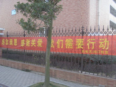 关爱他人、知恩图报是中华民族的传统美德之一,也是当代大学生道德修养的重要内容。在感恩节到来之际,为号召广大同学弘扬这种美德,11月27日中午,药学系07级在一号食堂门口举行了以“感念亲情,感谢关爱:我们需要行动”为主题的签名活动。