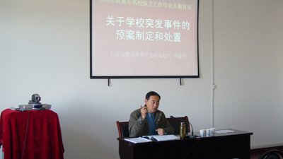 28日下午,省教育厅思政处处长杨建华同志围绕本次大会的主题作了《突发公共事件应急预案编制》的专题报告。杨处长着重讲了什么是突发公共事件、突发公共事件应急预案编制、如何妥善处置突发事件三个问题。报告结合当前社会治安形式,紧扣高校保卫工作的实际,详尽的分析了新时期高校安全保卫工作面临的新情况、新问题、新任务以及解决问题的新思想、新办法、新举措。大家一致认为杨处长的报告对高校的安全保卫工作有着极其重要的现实意义和长远的指导意义。