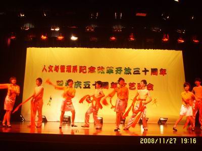 11月27日晚7时,人文与管理系在大学生活动中心隆重举行了庆祝改革开放三十周年暨校庆五十周年大型文艺晚会。