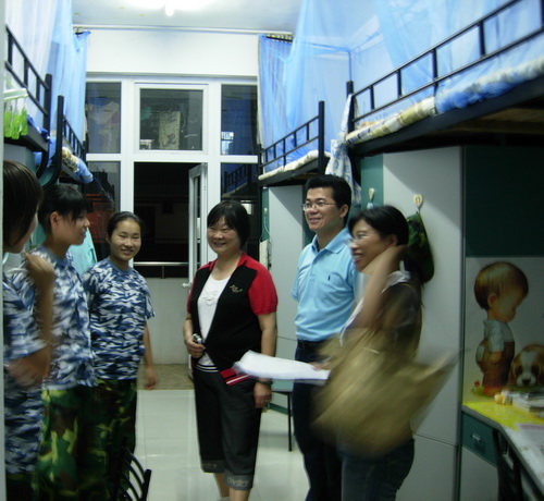 9月9日晚,医学一系党总支书记杨新庆、副主任方国庆、系秘书韩军、吴金庭、辅导员李曙、韩波同志深入新生宿舍,看望慰问新生,了解新生生活学习情况。