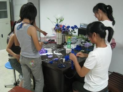 护理学系的同学们正在制作手工花卉