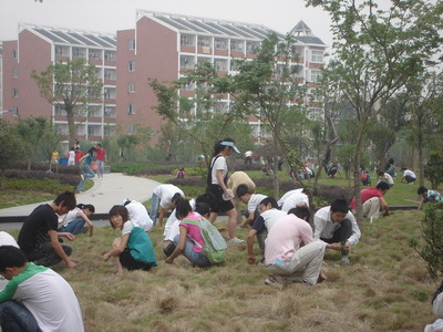 为了美化校园,增加学生的主人翁意识,6月1日上午,在我校校园绿化带,医学一系2006级党支部再次组织全体学生开展了义务拔除杂草、清扫落叶等活动。