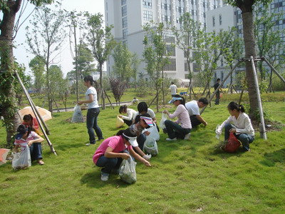 “皖医是我家,美化校园,从我做起”,6月5日,天气晴朗,烈日当头,医学一系2005级的同学们自发组织开展了大规模的清理草坪活动。劳动中,同学们不怕苦、不怕累,热情高涨,挥汗如雨,不到两个小时,清爽、翠绿、整洁的草坪就展现在大家的面前。