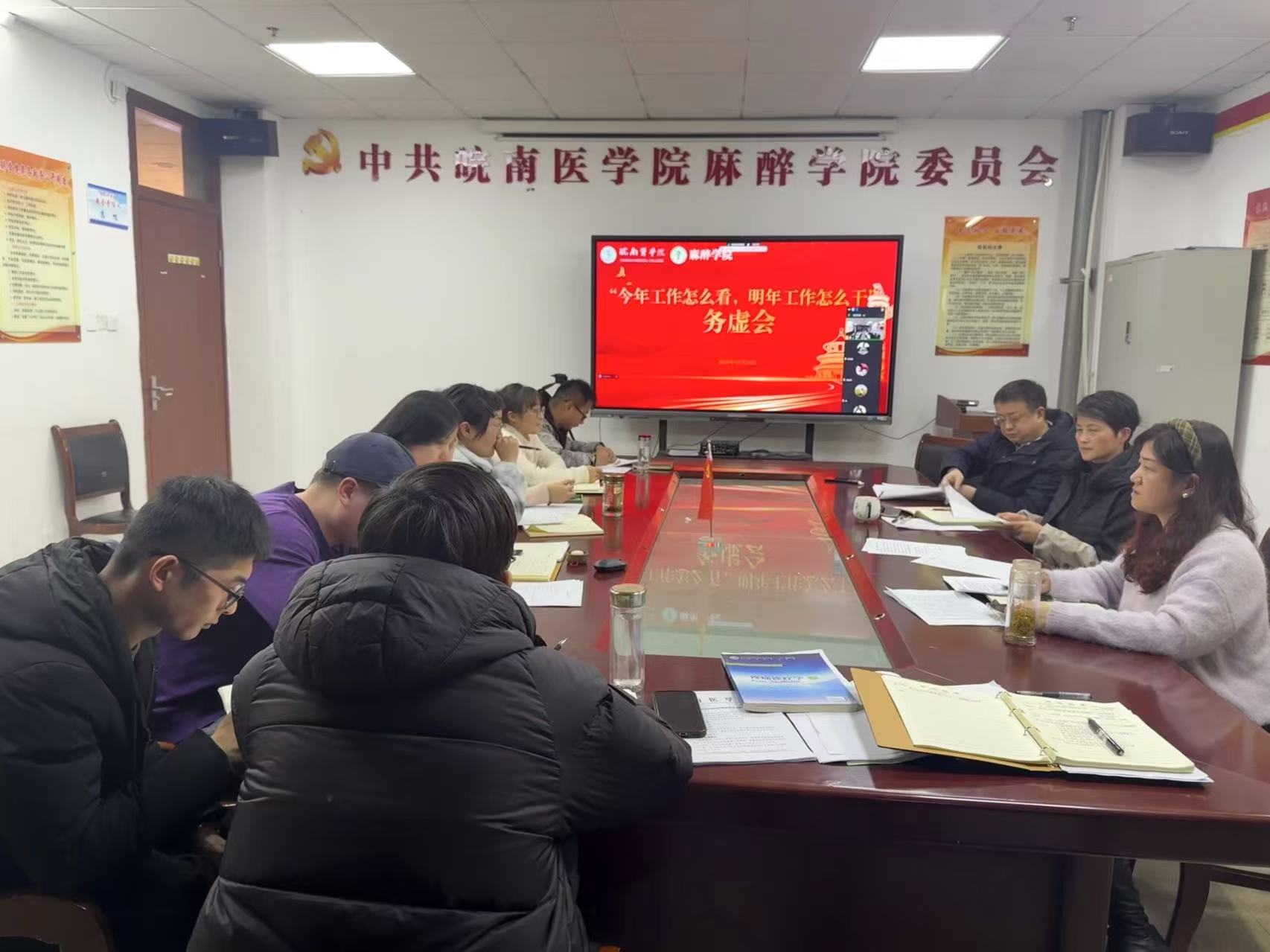 为深入贯彻落实学校相关重点工作会议精神,推进学院高质量发展,为2025年事业发展开好头、起好步,麻醉学院于12月24日召开“今年工作怎么看,明年工作怎么干”务虚会,认真查摆今年工作的不足,高位谋划明年工作。校本部全体教职工,所属附院教研室主任、副主任及教师代表通过线上线下相结合的方式参加会议,会议由学院党委书记、副院长崔晓霞主持。