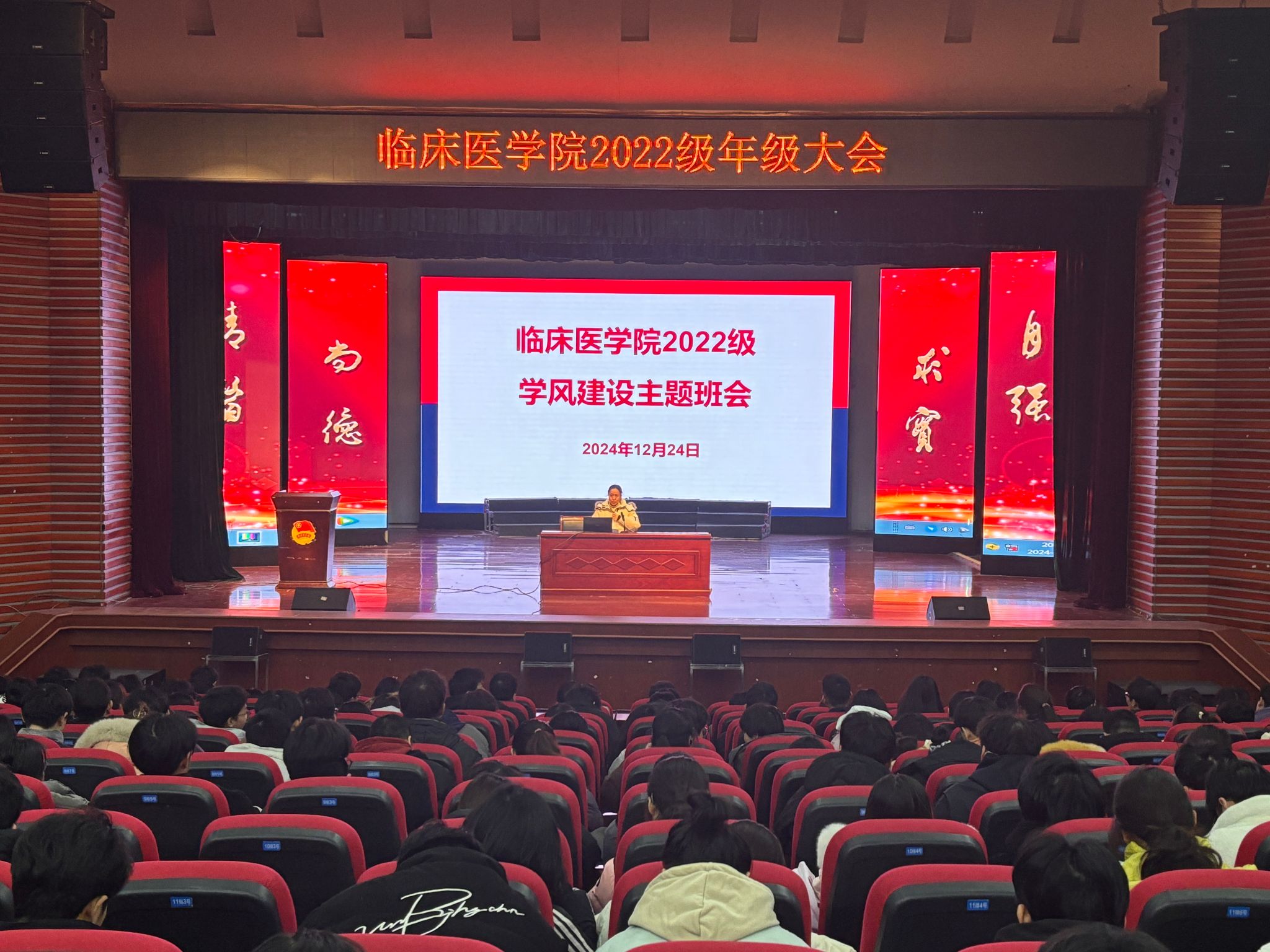 12月24日晚,临床医学院2022级在大学生活动中心召开期末年级大会,聚焦学生成长与发展核心需求,邀请校关工委“五老”报告团王雪琴老师、第一附属医院陶雨琦老师作生涯规划指导和经验分享,年级辅导员及2022级全体同学共700余人参会。