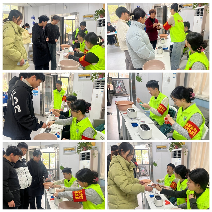 擦亮视界 助力学习。学院为“一站式”学生社区购置了超声波眼镜清洗机,社区党员们忙碌地为同学们清洗眼镜。他们使用专业的清洗设备和清洁液,仔细地擦拭镜片、镜框,去除灰尘、油污等杂质。清洗过程中,志愿者还为同学们讲解了眼镜保养的小知识,让同学们学会正确地清洁和保养眼镜。活动受到了同学们的热烈欢迎,许多同学表示清洗后的眼镜更加清晰,佩戴起来也更加舒适。
