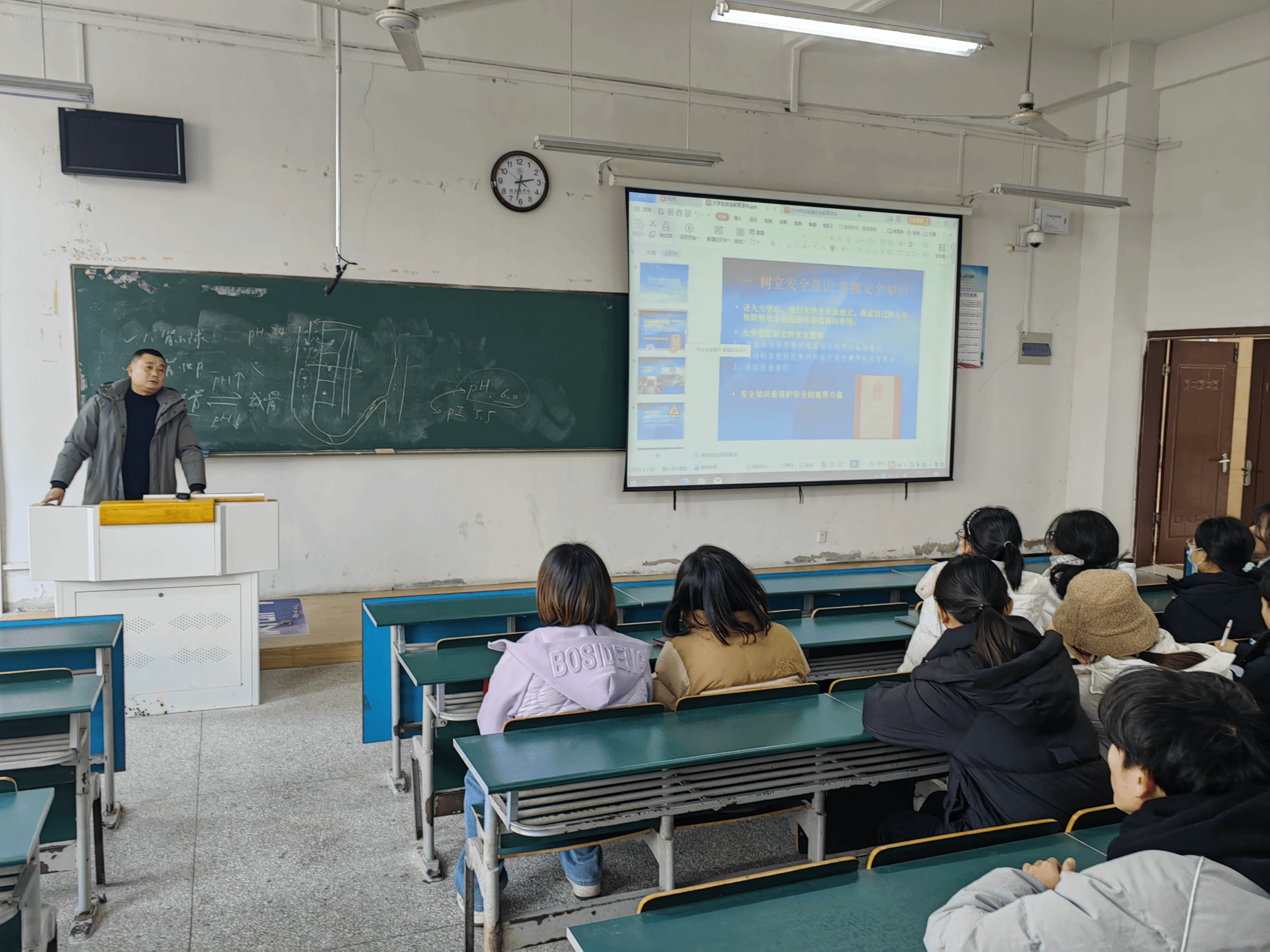 活动开始,沈磊强调了消防安全在校园安全中的重要性,指出通过此次活动旨在让每一位师生都能掌握基本的消防知识和技能,为构建平安校园贡献自己的力量。随后,保卫处芮鹏老师为师生们带来了一场生动有趣的消防安全知识讲座。他结合近年来发生的校园火灾案例,深入浅出地讲解了火灾的成因、预防措施以及火场逃生自救的方法,同时还详细介绍了各类消防器材的使用方法和注意事项,让师生们对消防器材有了更加直观和深入的了解。