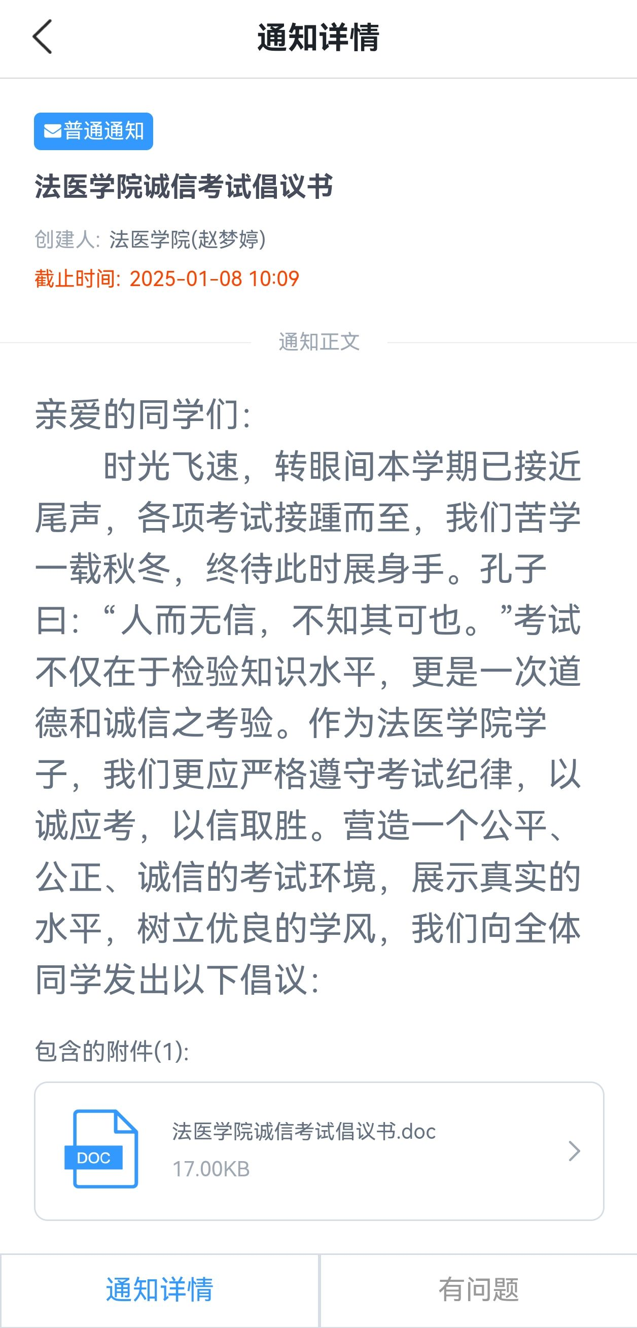 为进一步加强学风建设,严肃考试纪律,增强诚信意识,近期,法医学院开展以“诚信考试 从我做起”为主题的考风考纪教育活动,旨在营造风清气正的考试环境和积极向上的良好学风。
