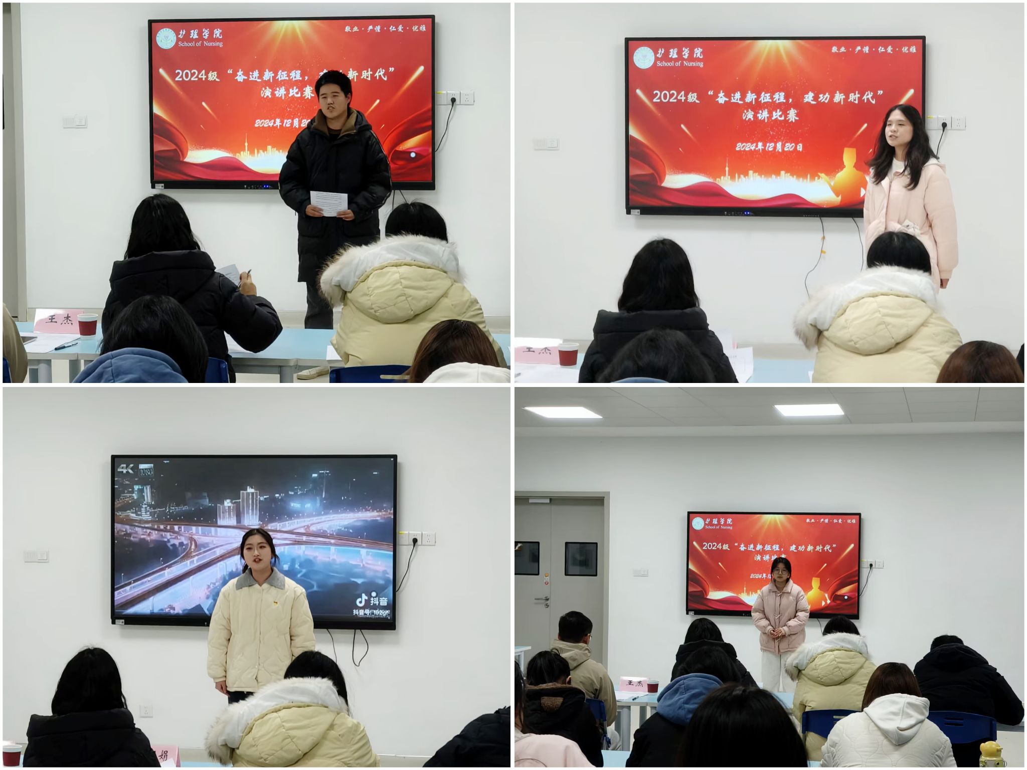初心映党旗,青春书华章。为厚植学生爱党爱国情怀,提升文化素养与表达能力,展现护理青年的蓬勃朝气,学院组织开展“奋进新征程  建功新时代”演讲比赛。选手们激情澎湃,以饱满真挚的情感讲述对党的二十大和二十届三中全会精神的理解认识,倾诉皖医校园学习生活的所思所感,以及对未来投身护理事业、守护人民健康的坚定决心。大赛最终评选出一等奖2名、二等奖3名、三等奖5名。