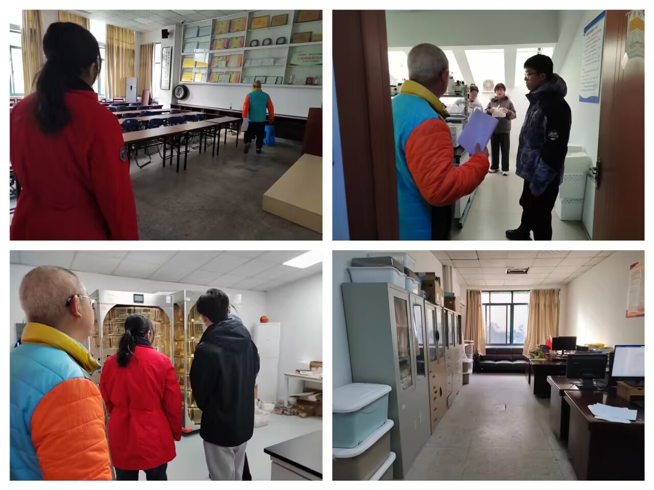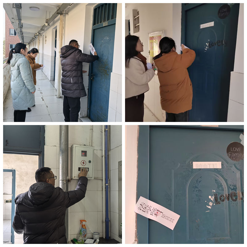 1月22日,学院组织期末安全卫生大检查,检查小组成员深入各教研室、实验室、办公室等场所进行安全检查和隐患排查,就检查中发现的问题与学校相关部门进行沟通,并提醒寒假最后离校人员务必关好门窗,切断水电,确保工作场所安全,坚决防止发生安全事故。同时,1月22日至23日,学院学生工作队伍深入学生宿舍,开展全面细致的安全隐患排查,重点检查宿舍的水电设施、电器使用情况,确保宿舍断电。完成安全隐患排查后,辅导员逐一给每间宿舍贴上封条。针对个别尚未离校学生,辅导员详细询问了原因和离校时间,将密切关注学生动向,确保全部安全顺利返家。