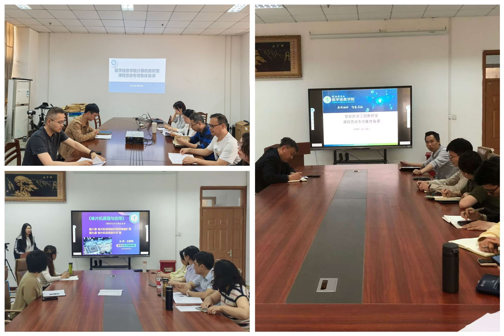 为深入贯彻落实立德树人根本任务,推进课程思政高质量建设,近日,医学信息学院分别组织计算机、医学信息工程、智能医学工程教研室开展集体备课活动,推动将思政元素有机融入专业课程教学,实现知识传授与价值引领的统一。