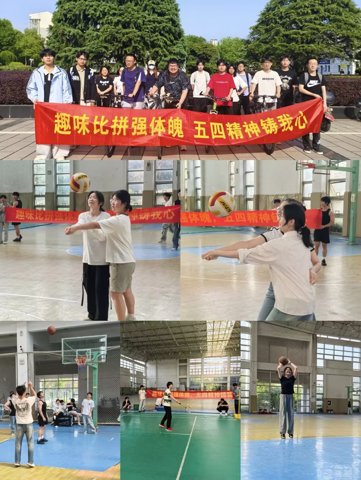 趣动青春,体教融合有新意。组织开展"骑"遇春光活力赛,30余名师生组成“彩虹骑行队”,穿越校园棕榈大道、喷泉广场等地标,并在终点设“党史问答打卡点”,将运动里程转化为党史知识积分,实现“车轮上的思政课”;开展创意运动挑战,推出“五四青春运动会”,涵盖“精准赋能”投篮赛、“爱的华尔兹”双人排球颠球、“水到渠成”团队运球等项目,以趣味协作激发集体凝聚力,运动场上欢声笑语,展现出医学生课堂外的别样风采。