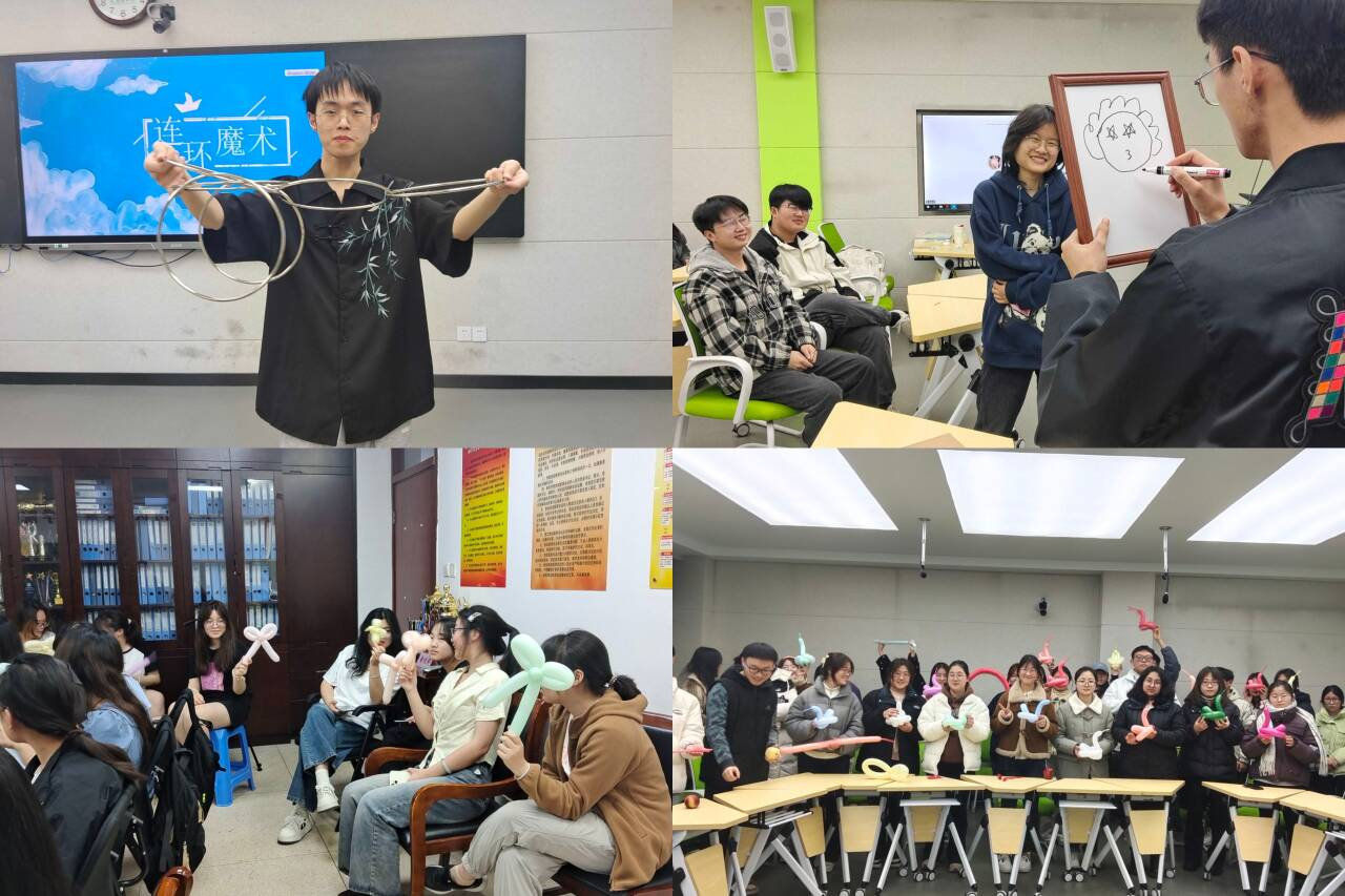 本次系列活动累计吸引800余人次参与,不仅培养了30余名魔术新秀,更展现出独特育人内涵。“气球爱心手拿棒教学”等公益主题工作坊将魔术与志愿服务相结合,组织学员走进社区为儿童表演;剧场秀通过“撕毁烦恼卡片”等意象传递“重构幸福”的积极理念,成为“用魔术解构生命哲学的生动课堂”。不少参与者表示,工作坊让他们学会用不同视角看待医学知识,剧场秀则增进了与其他社团同学的交流。项目结项后,协会计划将成熟的魔术教学内容制作成视频供更多同学自学。一位学员反馈:“每周最期待的就是魔术协会的活动,在这里既能解压又能认识新朋友,还能学到新知识,原来校园生活可以这么有趣!”